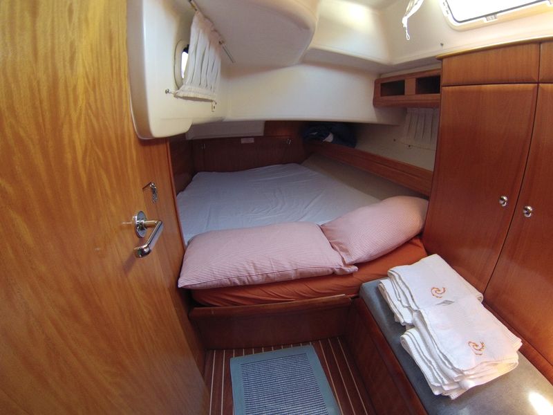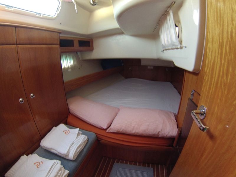 The "Plenis Velis" can accommodate 8 guests in style and comfort. There are 2 cozy double cabins in the stern, with bathroom and shower, and there is 1 shipowner's cabin (slightly more spacious than the double cabins) in the bow, with bathroom and shower. There is also a cabin with 2 bunk beds, which is normally used by the crew. On the upper deck, there is also an outdoor shower available.