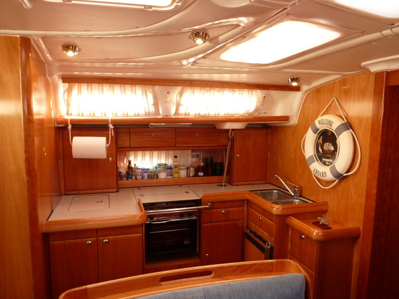 The internal living quarters are very bright and well ventilated thanks to the additional hatches and the large side coach roof windows. There is a fully equipped kitchen with 2 refrigerators, oven and cooking appliances to cater for your every need! And to keep you on your feet, we have a state of the art stereo system with USB or iPod ports so you can listen to your favourite music while miles away at sea.